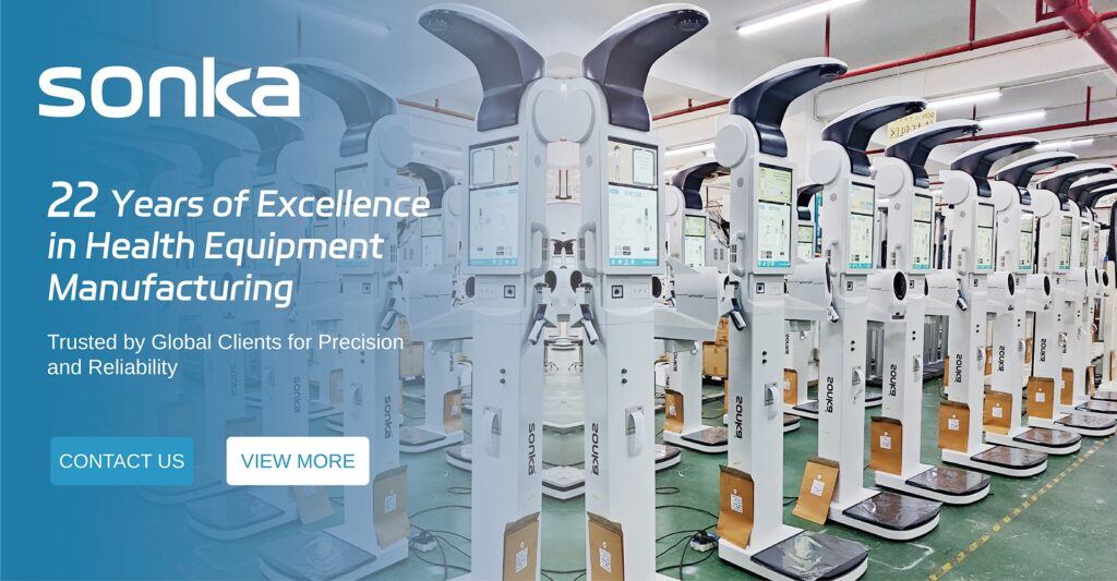 Sonka’s Health check machines are certificates cleared and go through a rigorous QA process, so you can trust your results of report, our technicians check them at the factory, in the warehouse, and again during installation. Our machine has compare with authorized brand without much difference.